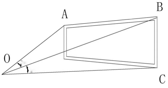 視場(chǎng)角是指光學(xué)鏡頭的視野范圍,由水平視場(chǎng)角和垂直視場(chǎng)角組成,如下圖角AOB為水平視角,角BOC為垂直視角。視場(chǎng)角越大,視野就越大;焦距變長(zhǎng),視場(chǎng)角變??;焦距變短,視場(chǎng)角變大。