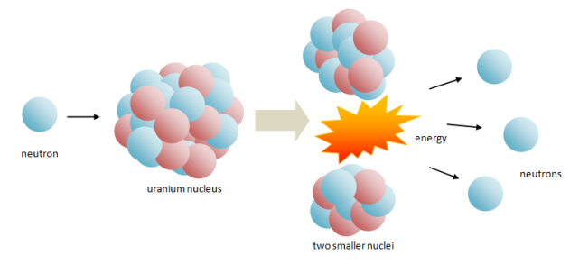 圖:反應(yīng)堆的核裂變反應(yīng)中,中子撞擊原子核,釋放大量的能量和更多的中子