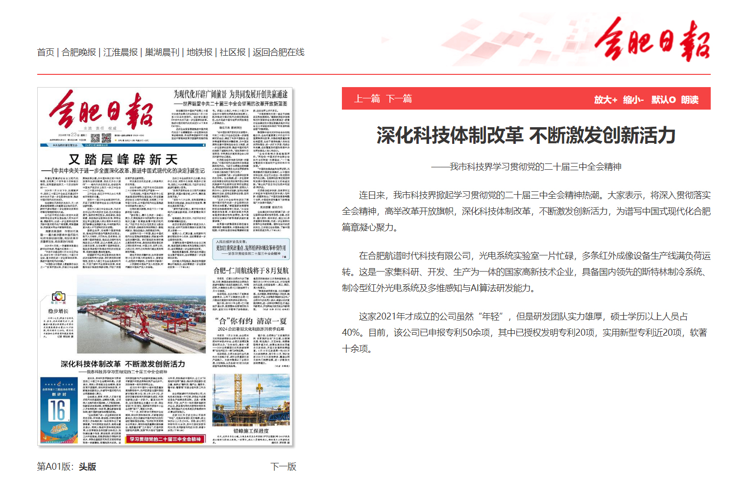 近日,黨的二十屆三中全會圓滿閉幕。作為我市科技前沿企業(yè),合肥航譜時(shí)代科技有限公司積極響應(yīng)貫徹黨的二十屆三中全會精神,并榮獲合肥日報(bào)的關(guān)注報(bào)道。