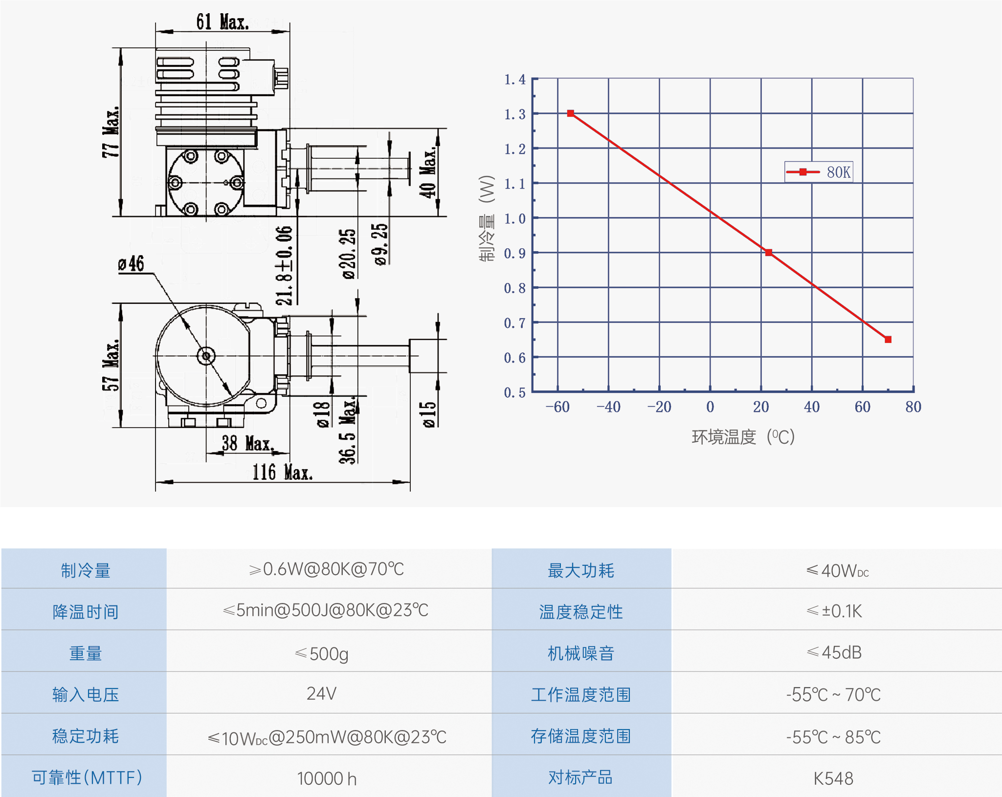H109集成整體式制冷機是按照集成式杜瓦/制冷組件(IDCA)概念設(shè)計,控制器集成于制冷機電機內(nèi)部。具有機械振動小、噪音低和可靠性高等特點??捎糜诘孛?、機載等多種系統(tǒng),是大面陣焦平面探測器組件的優(yōu)選制冷機。